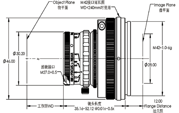 針對大靶面相機及線陣掃描相機開發(fā)分辨率高,畸變小,中心與邊緣成像均勻結(jié)構(gòu)緊湊、堅固耐用可鎖定對焦和光圈